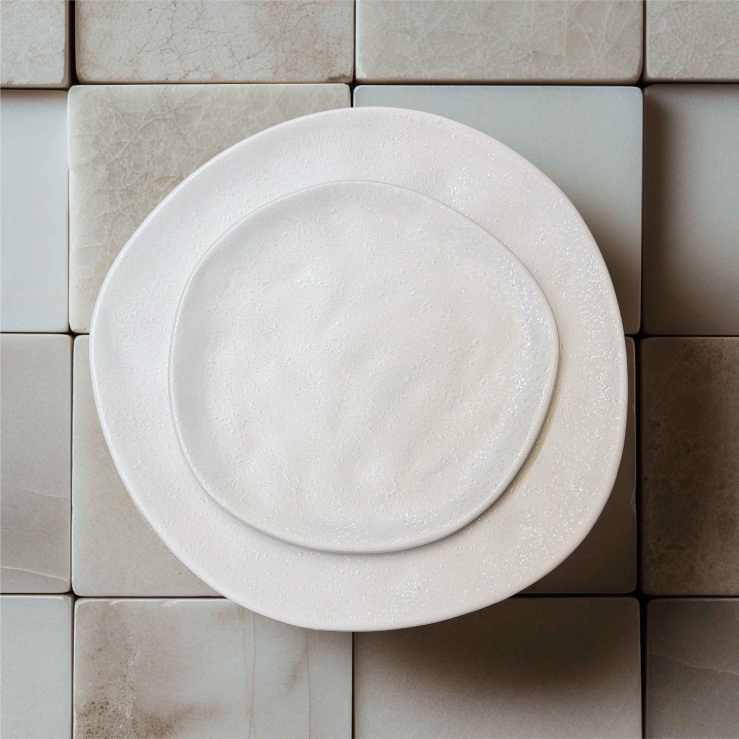 This handcrafted ceramic dinner plate has a unique, organic shape and comes in two beautiful colors. A warm, earthy tone and a creamy textured matte white. Perfect for everyday dining or special occasions, this versatile plate adds a touch of modern elegance and rustic charm to your table setting.
